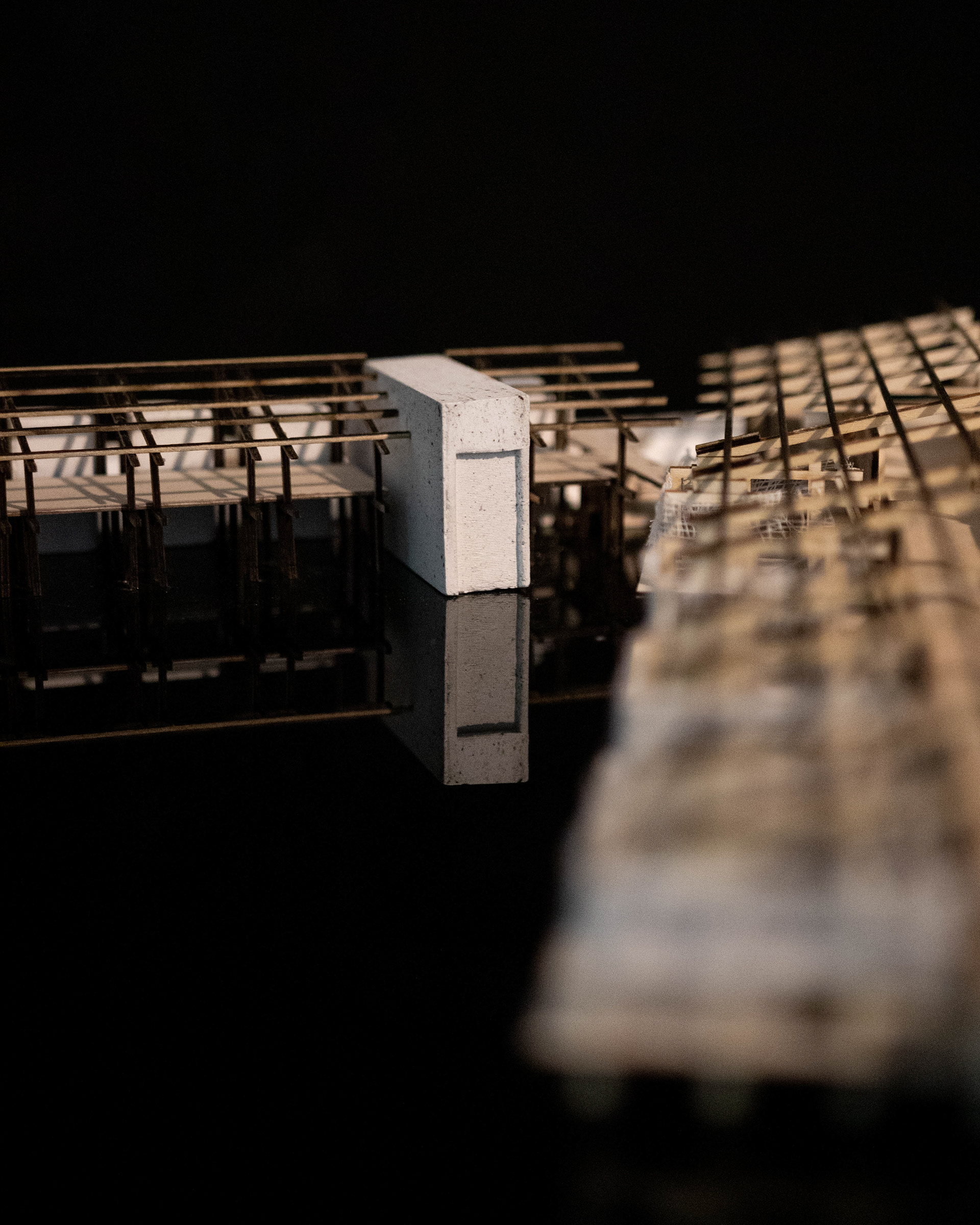 + Final 1:200 model of the tidal market 2nd year in Bartlett School of Architecture/ Plaster, crushed charcoal, aluminium sheet, metal mesh, acrylic, poplar ply, alginate/ A straightforward model.